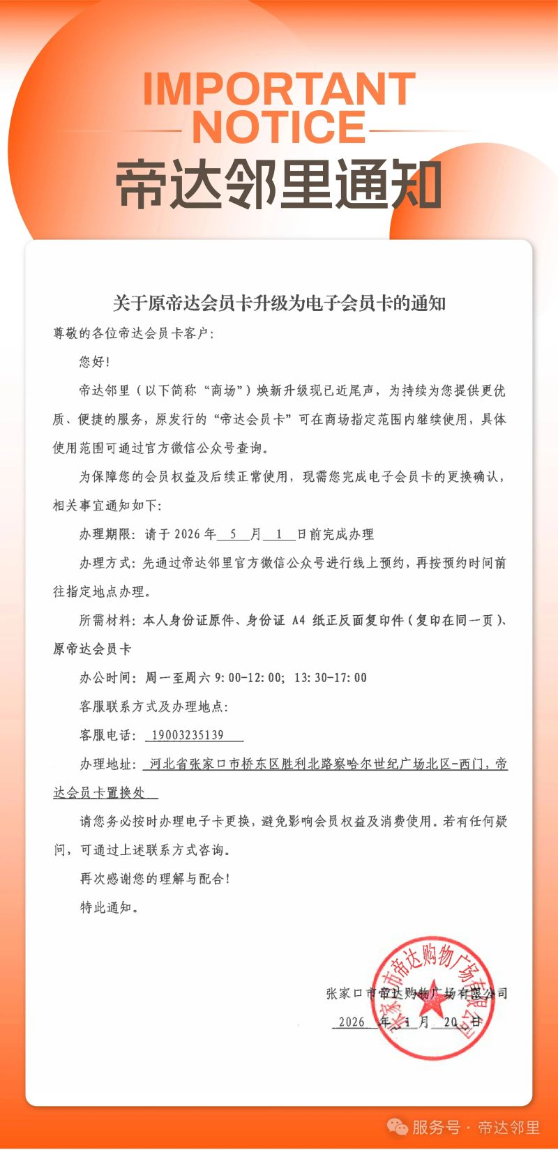 剛剛,帝達(dá)鄰里發(fā)布關(guān)于原帝達(dá)會(huì)員卡升級(jí)為新電子會(huì)員卡的通知,明確升級(jí)后之前的余額可以繼續(xù)使用,還發(fā)布了換取辦法、使用范圍、余額使用規(guī)則,有卡的朋友趕緊收藏吧!